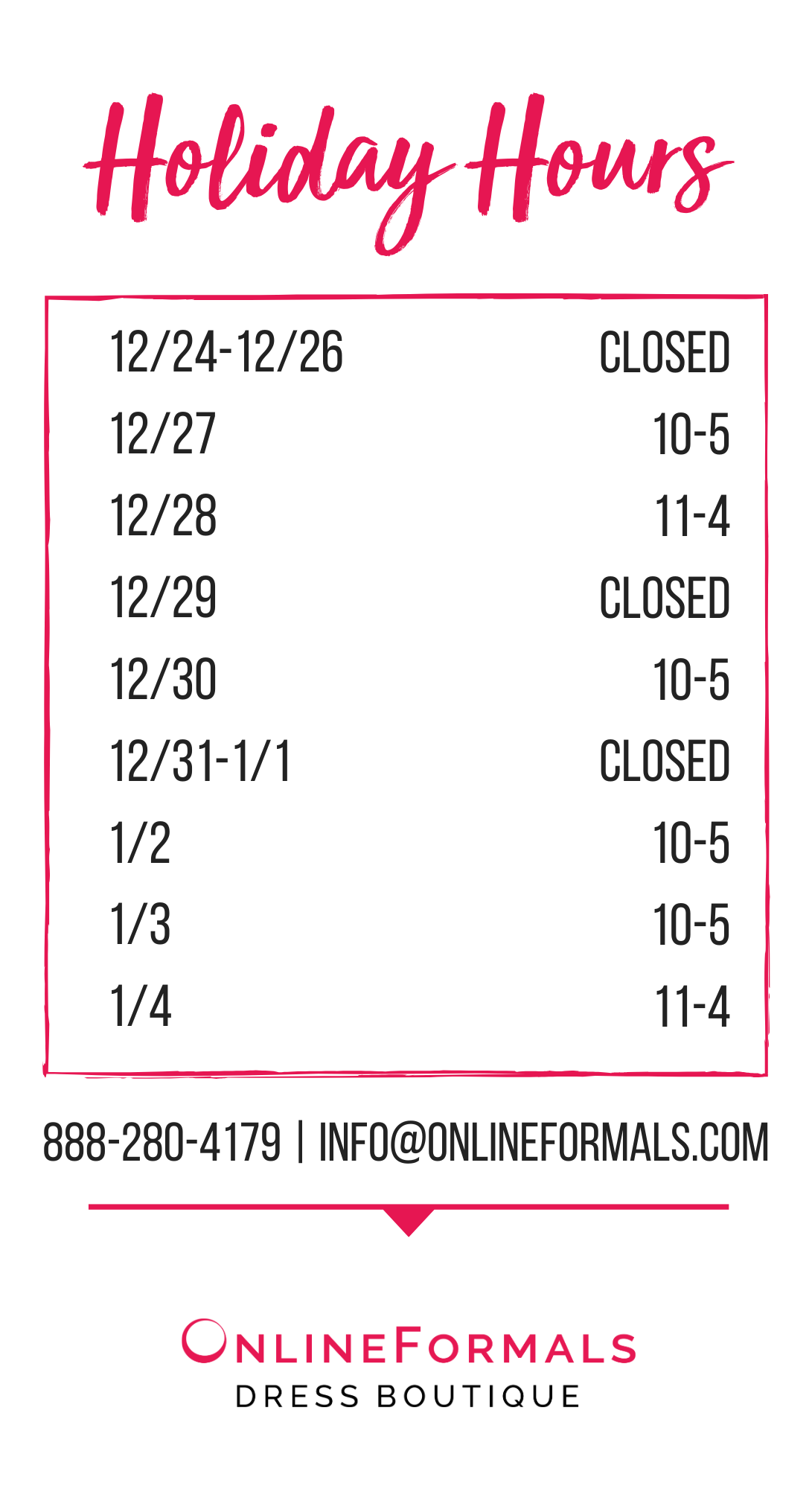 Call us anytime at 888-280-4179 or email info@onlineformals.com
